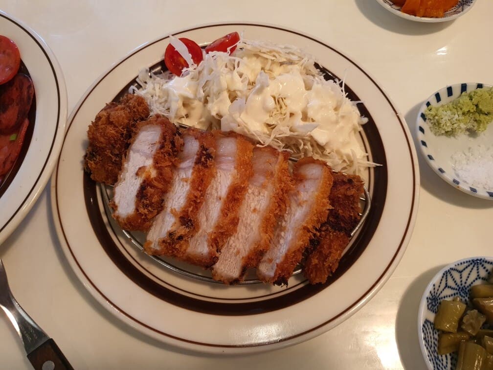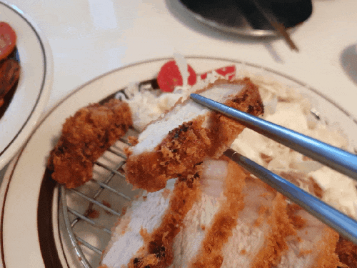 어느 부위를 썼는지 확인은 못했으나, 목심인 것 같습니다. 그래도 살코기 부분이 굉장히 부드러웠고, 감칠맛을 더 해주는 비계 부분도 맛 좋았습니다. 그리고 아까 말씀드렸던 워머에 카레가 있었는데, 식사 마칠 때까지 따뜻해서 만족스러웠습니다. 살짝 찍어먹으니 다시 데워진 돈가쓰처럼 따뜻했지만 카레 맛은 우리가 흔히 먹는 카레랑 큰 차이는 못 느꼈습니다.