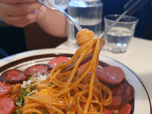 베이스가 토마토라 그런지 맛에서 특별한 것을 찾을 순 없었지만, 노른자로 인해서 고소한 맛이 가미됐습니다. 그리고 주변을 둘러싸고 있는 소시지와 함께 먹으니 재밌었습니다. 확실히 맛도 좋았지만 눈이 즐거운 식사였습니다.